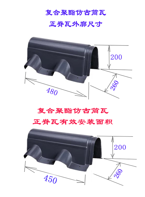 復(fù)合聚酯仿古瓦脊瓦安裝尺寸